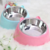 This double stainless steel pet bowl features a cartoon-style ABS base and anti-overturn design. Ideal for cats and dogs, it includes a neck-guard tilt to support comfortable eating and drinking. Durable, easy to clean, and prevents spills—perfect for serving food and water at once with a stylish, pet-friendly look.